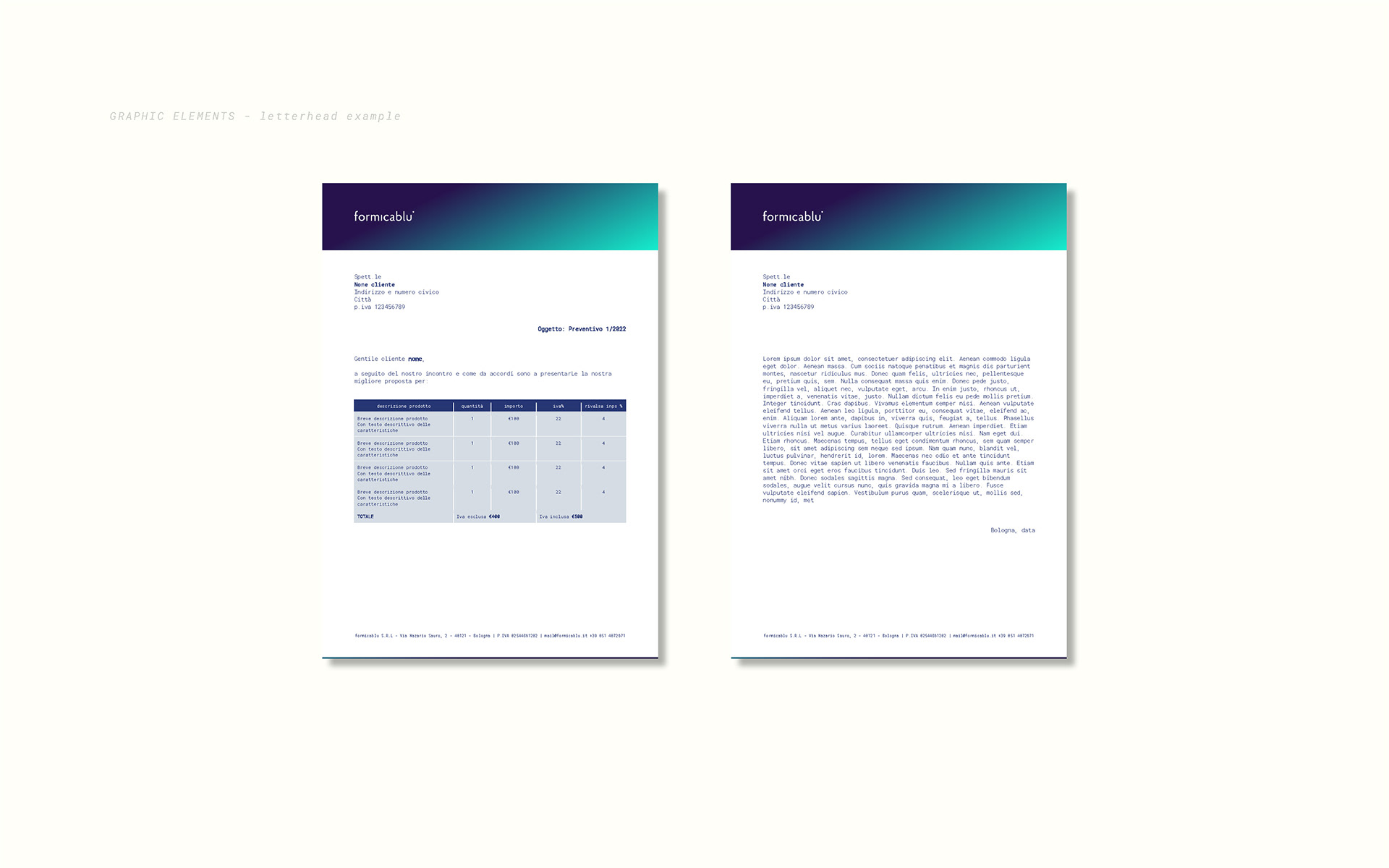 formicablu redesign identity - starting from an existing logo, I created a graphic system and an identity for the scientific communication agency formicablu.