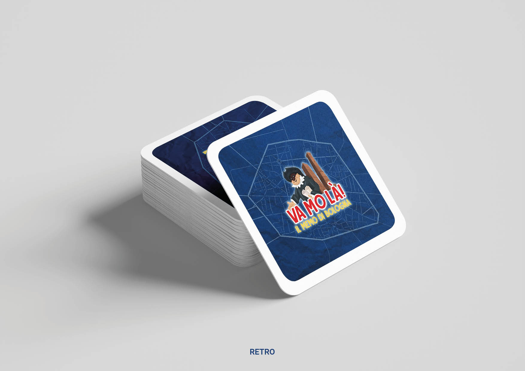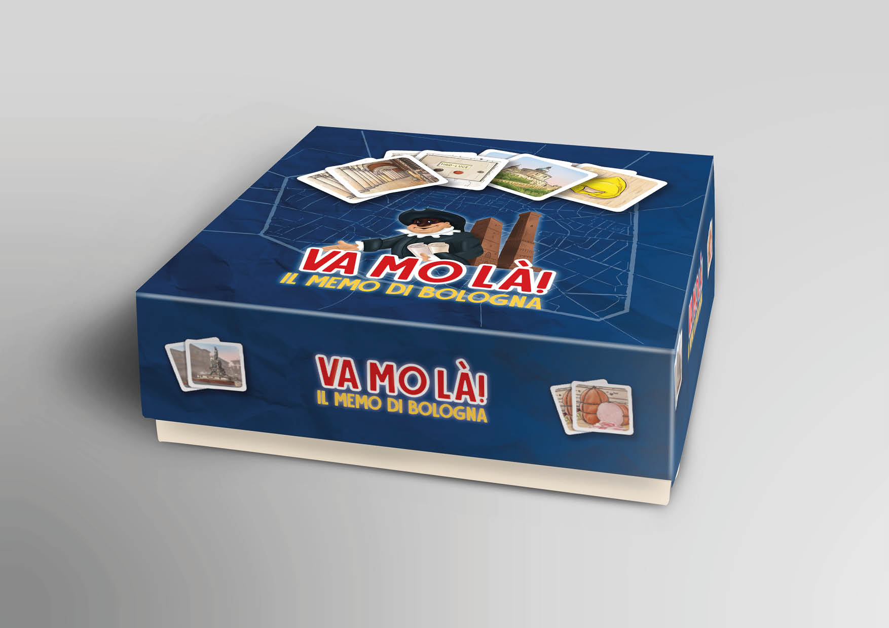 Progettazione della grafica del gioco in scatola "Va Mo Là", fratello del più vecchio Bolognando. Creazione logo, grafica scatola, grafica retro carte ed impaginazione del libretto descrittivo del gioco.
